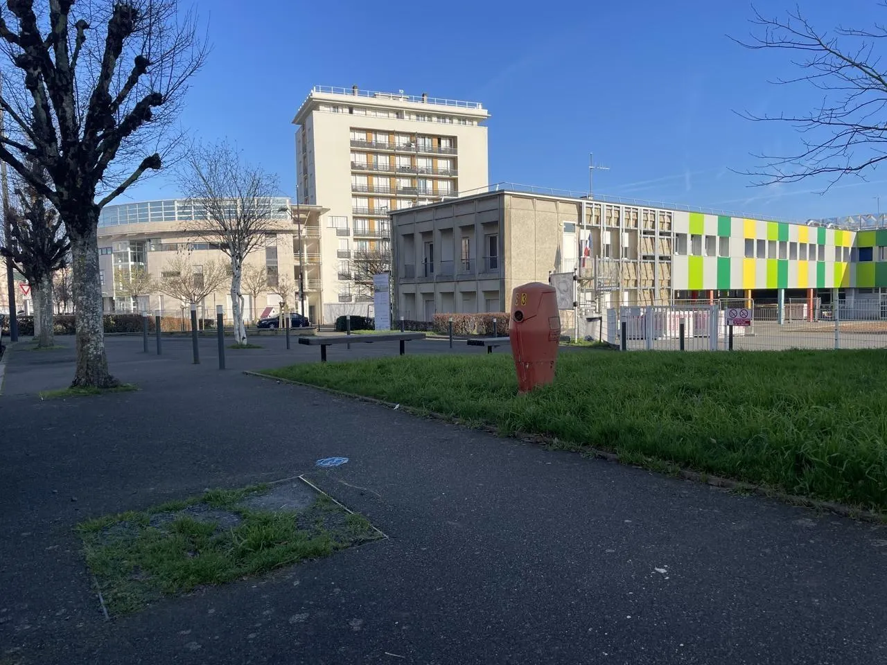 Il ne reste plus rien de l’arbre percuté par un camion le 9 juillet 2025, entre la résidence autonomie des Bazinières et l’école Saint-Exupéry, avenue François-de-Nicolay, à Sablé-sur-Sarthe. © Ouest-France