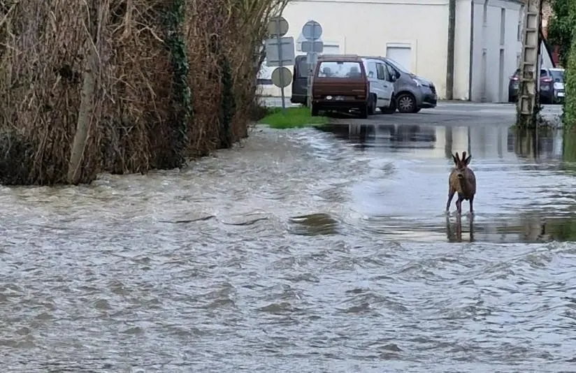 Ce mardi 17 février 2026, à Chalonnes-sur-Loire (Maine-et-Loire), un habitant n’a pas hésité à secourir un chevreuil, pris au piège sur une route inondée. Les pompiers sont ensuite intervenus. De nombreux animaux sont désorientés avec les crues importantes qui touchent le département.