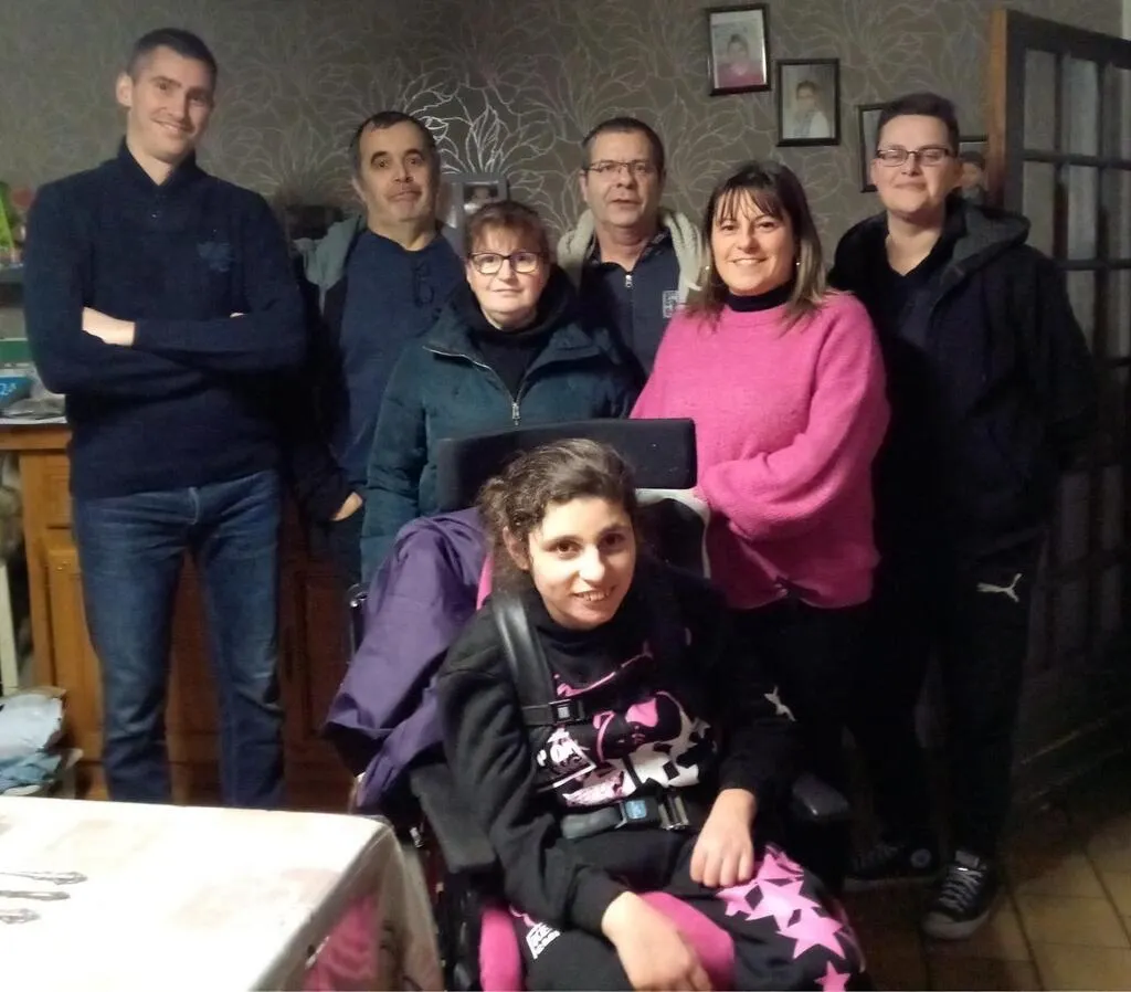 Luna, aujourd’hui âgée de 17 ans, au centre entourée par sa famille. © Le Maine Libre