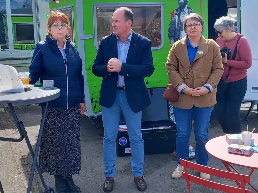 Béatrice Leveque, première adjointe au maire de Saint-Jean-du-Bois, Emmanuel Franco, président du Val de Sarthe, et Elisabeth Moussay, vice-présidente du Val de Sarthe lors de l’inauguration. © Le Maine Libre