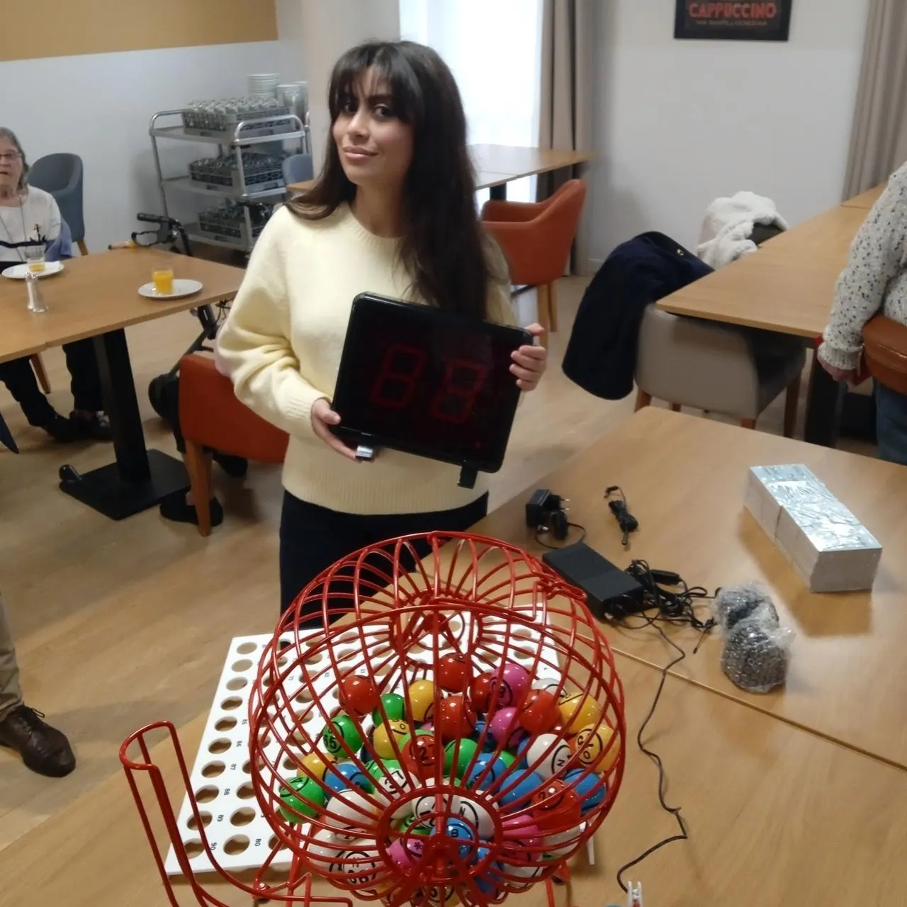 L’année passée, durant un trimestre, Farah s’est rendue tous les mercredis dans l’établissement pour rencontrer les résidents : L’aumônerie de mon lycée propose aux volontaires des rencontres hebdomadaires dans cet Ehpad autour du loto