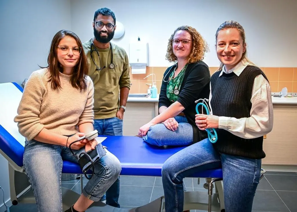 Marolles-les-Braults, mars 2025. Emilie Perrin, Alain Ilango, Agathe Molière et Charlotte Gress sont médecins généralistes et salariés de la commune de Marolles-les-Braults. Tous ont d’abord eu une activité libérale. © Le Maine Libre - Yvon LOUÉ