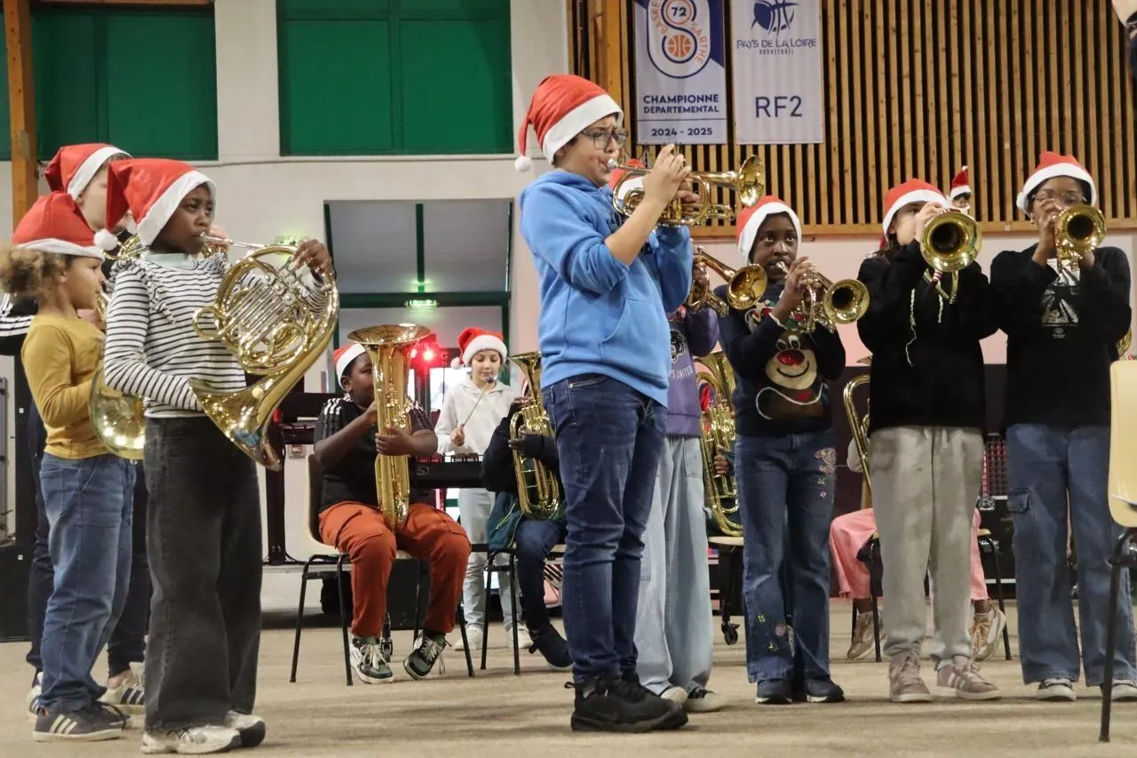 L’orchestre de l’école du Gai-Levant a joué devant les participants du Noël du bel âge, jeudi 11 décembre 2025, à la salle Georges-Mention de Sablé-sur-Sarthe. © Ouest-France
