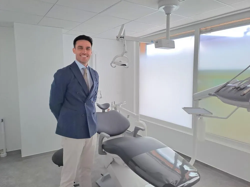 Le Dr Antonio Berral-Gutierrez, dans le nouveau cabinet dentaire qui doit ouvrir fin mars 2026. © Le Maine Libre
