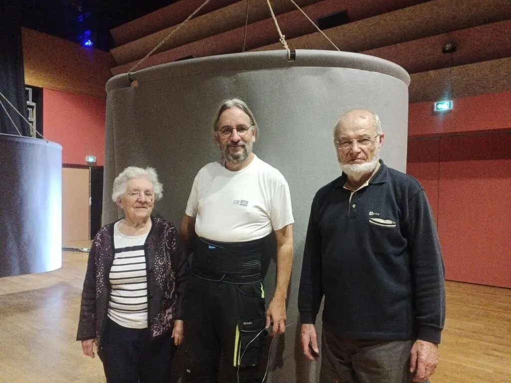 Odette et Vincent Gasco et Jean-Paul Menu, de l’Association passerelle du patrimoine des Pays de Loué (Sarthe), présentent l’exposition qui démarre ce samedi 21 septembre 2024. © Ouest-France