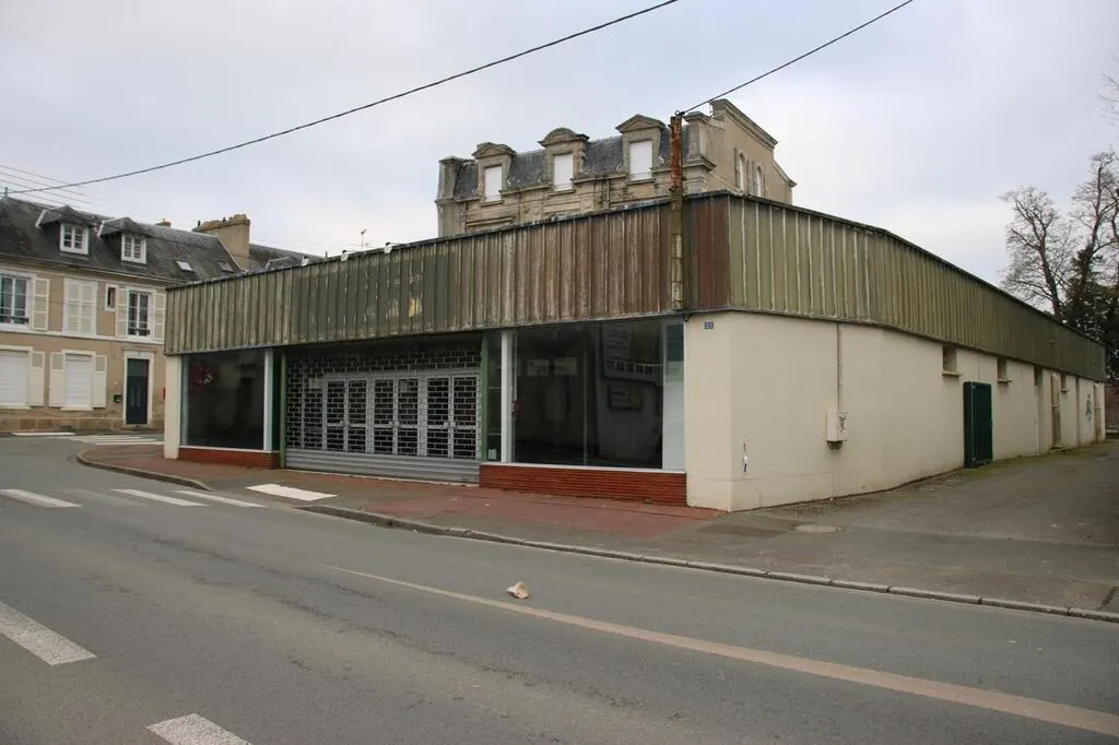 Le bâtiment de l’ancien commerce Texti, sera démoli pour laisser place à un parc urbain devant la maison de maître. © Ouest-France