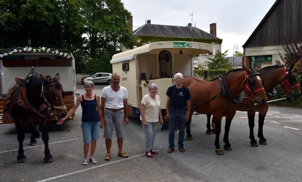 Robert et Colette Leroy, de Courgenard, ainsi qu’Harrys et Annick Gonsard, de Saint-Jean-des-Échelles, participent une nouvelle fois à la fête des randonneurs à cheval, en juillet 2022 en France.