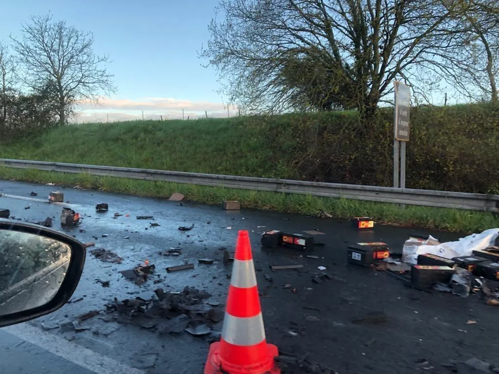 Un poids lourd a perdu une partie de son chargement sur la voie de droite.