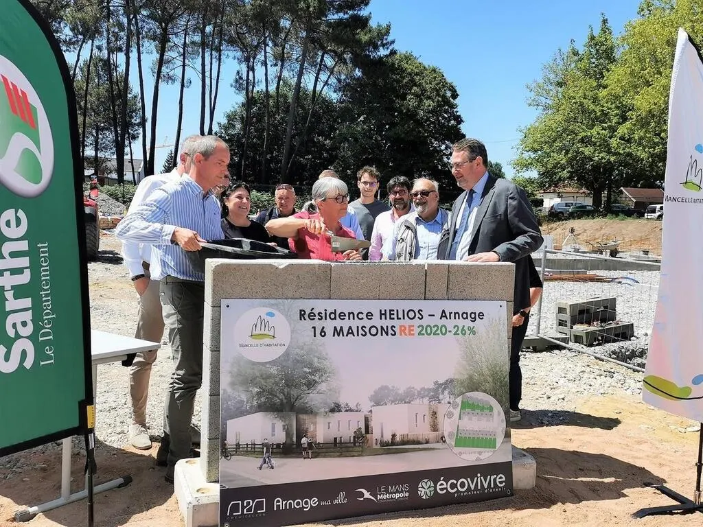 La première pierre de la Résidence Hélios - implantée en lieu et place d’une bonne partie de la plaine de Nauguibert à Arnage - a été posée. Coût de l’opération : près de trois millions d’euros.