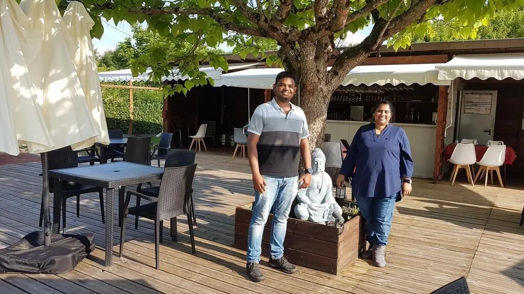 Arun Padmakumar, directeur du camping, épaulée de Atitha Spencer, a ainsi ouvert son restaurant de spécialités indiennes. Une grande terrasse accueille les clients. Un endroit idéal pour déjeuner ou dîner en plein air. L’espace n’est pas couvert pour le moment, mais  nous sommes en train de voir pour monter une structure dès l’automne »,