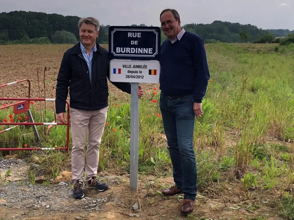 Laurent Paris, le maire, et tous les membres de la municipalité, ont validé en concertation avec l’association Rouillon village d’Europe, le choix de désigner l’une des futures voies de circulation du secteur de la Pointe, rue de Burdinne, pour matérialiser le lien qui unit les deux communes, et ce depuis maintenant une douzaine d’années.