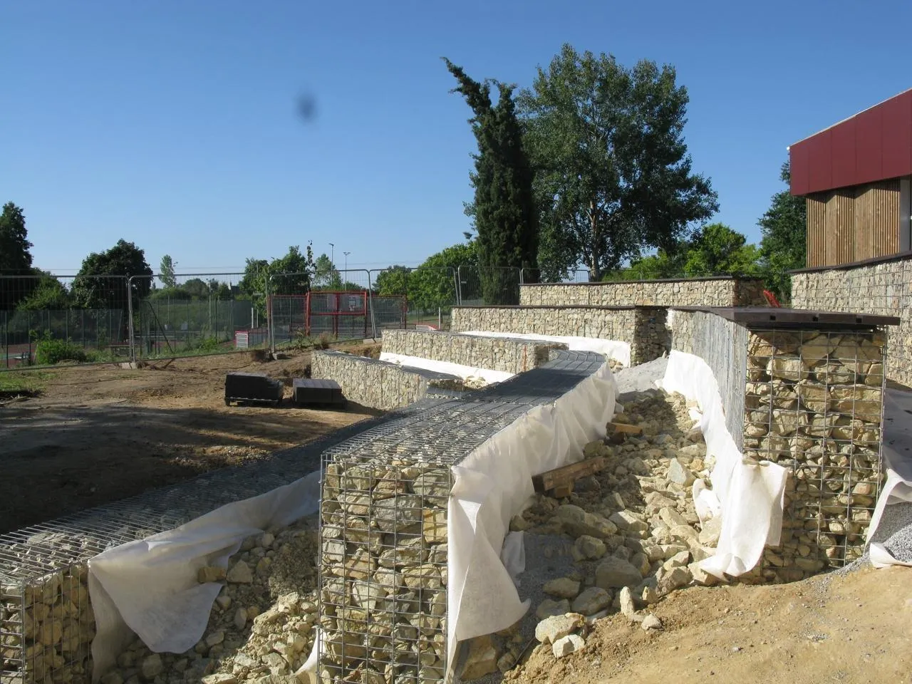 À Clermont-Créans, les travaux sur le site de la salle des fêtes touchent à leur fin en ce mois d’août 2025… Mais pas complètement ! Il faudra attendre l’automne et les plantations d’arbres et de végétaux pour pouvoir le dire. En effet, c’est un théâtre de verdure que projette de créer la municipalité entre la route de Créans et la salle des fêtes, face aux gradins en cours de construction.