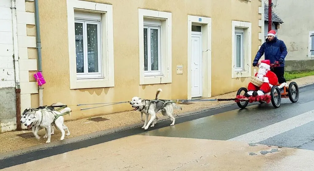 Le Père Noël est arrivé avec ses chiens de traîneau. © Le Maine Libre