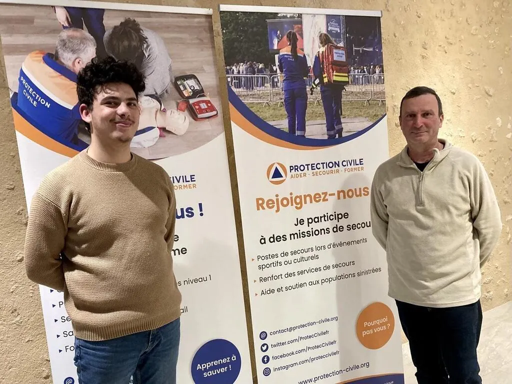 De gauche à droite : Kylian Rocher, chargé de la communication, et Laurent Maillard, président de la Protection civile de Noyen-sur-Sarthe. © Ouest-France