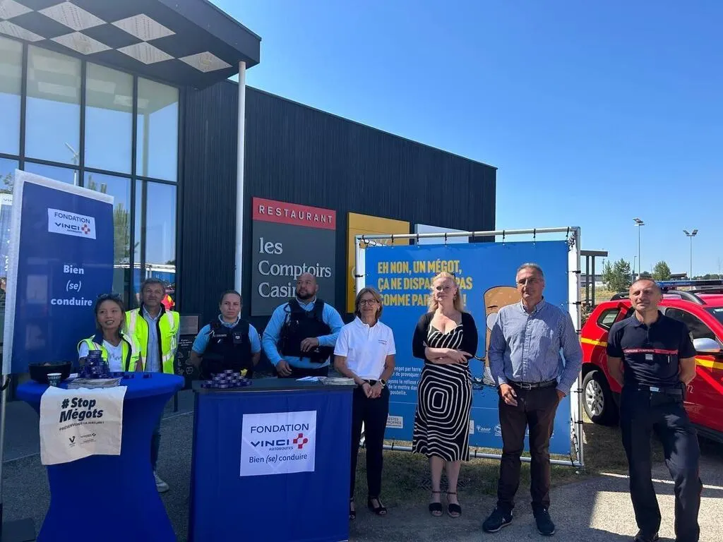 photo  l’opération stopmégots, organisée par la fondation vinci autoroutes, a eu lieu, ce vendredi 11 juillet 2025, pour sensibiliser les conducteurs sur les risques des incendies en sarthe.  ©  ouest-france 1