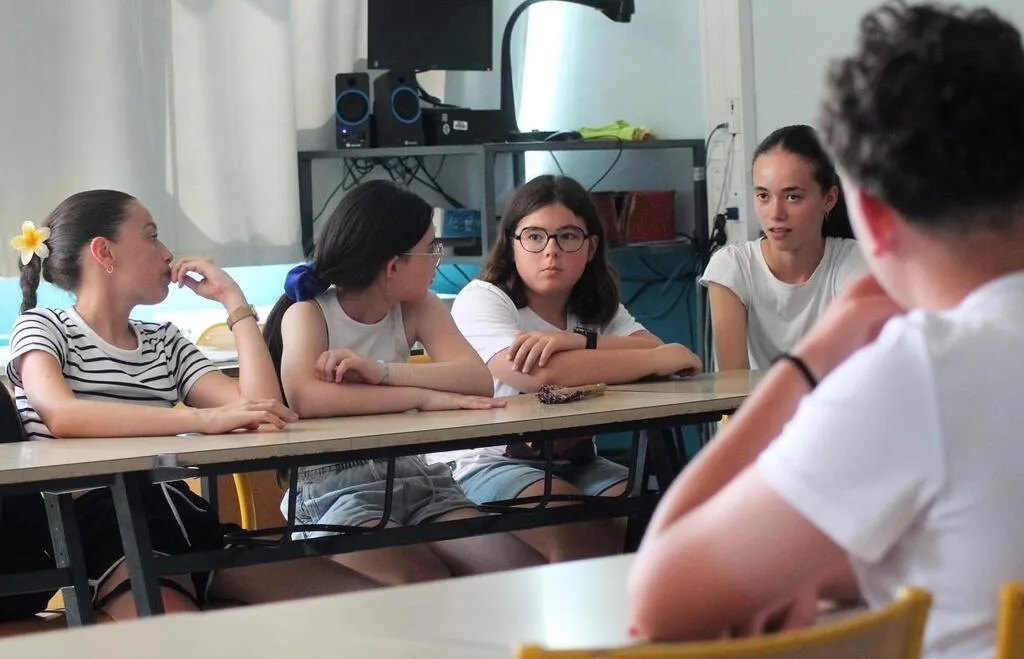 Les élèves de cinquième du collège Bellevue, à Loué, ont partagé leur ressenti sur l’expérience de non-mixité en présence de la haute fonctionnaire à l’égalité filles-garçons Claude Roiron, vendredi 20 juin 2025. © Ouest-France