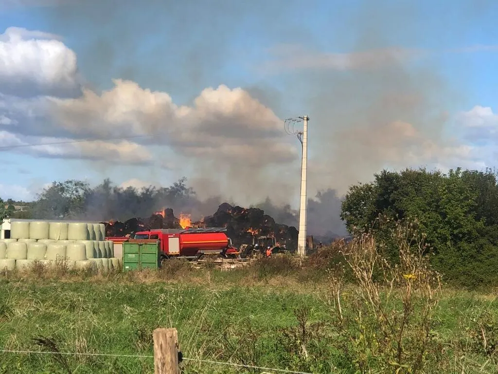 Depuis 8 h 15 ce jeudi 12 septembre 2024, un hangar de 700 m² pour 8 mètres de haut, ainsi que  plusieurs centaines de tonnes de fourragesÂ