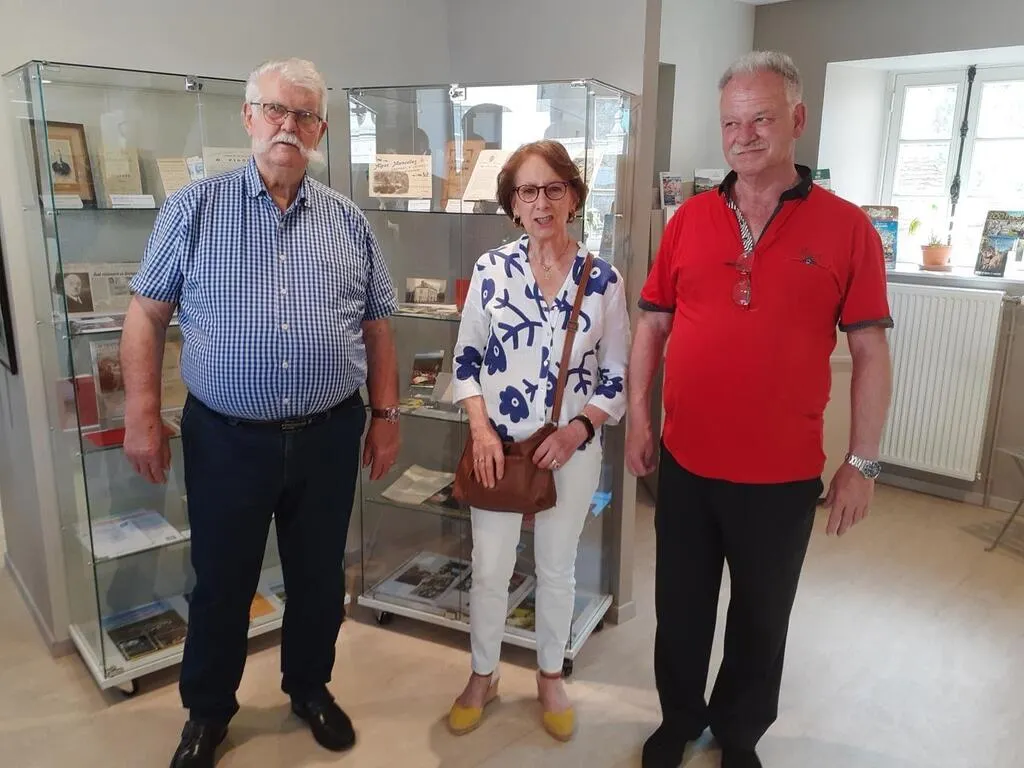 Bernard Leroy, et Suzanne Bons, les deux prédécesseurs du président en exercice, Pascal Delpierre (à droite), étaient présents lors de l’inauguration de l’exposition, le 28 juin. © Ouest-France