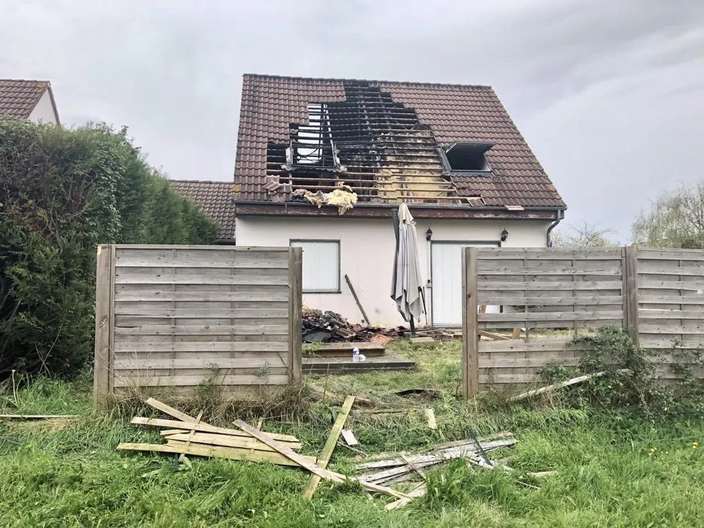 Une maison en partie détruite par un incendie dans un lotissement... |
