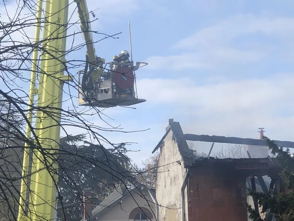 A midi, l’incendie était maîtrisé mais de la fumée s’échappait encore du bâtiment.