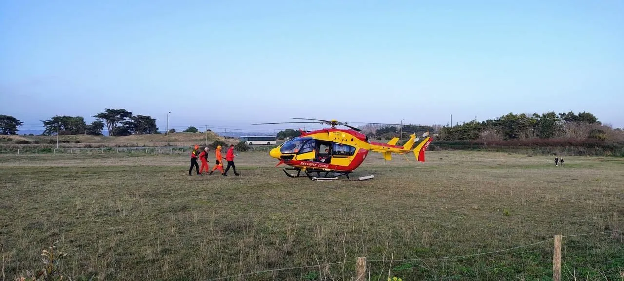A 18h30, une équipe de plongeurs des pompiers de Loire-Atlantique sont arrivés sur place pendant que l’hélicoptère Dragon 56 est parti se ravitailler en carburant.