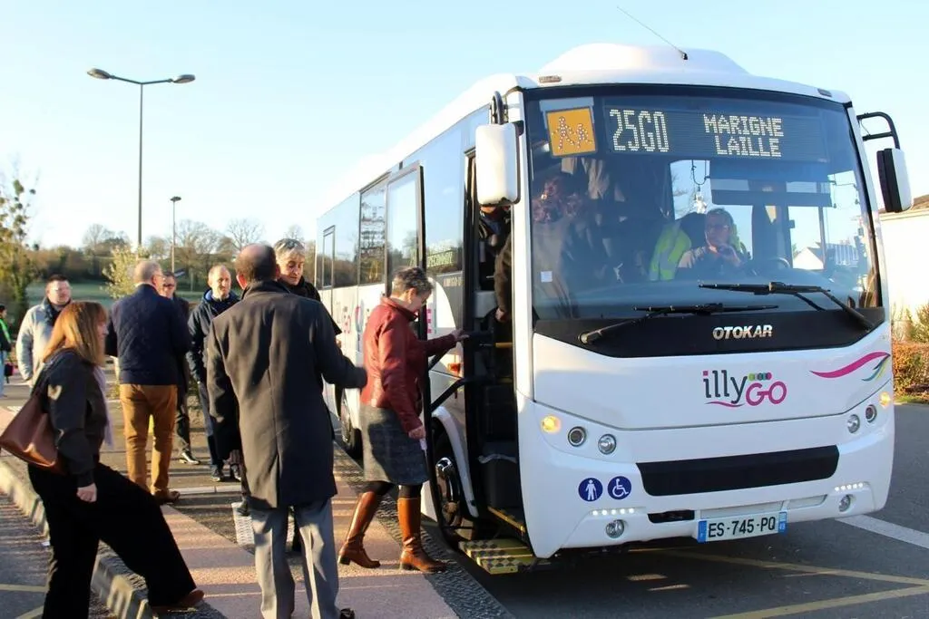 Jeudi 6 mars 2025, les élus locaux ont inauguré le lancement de la nouvelle ligne de transport illyGO. Roulant au biogaz, elle relie Saint-Ouen-en-Belin à Marigné-Laillé en passant par Écommoy.