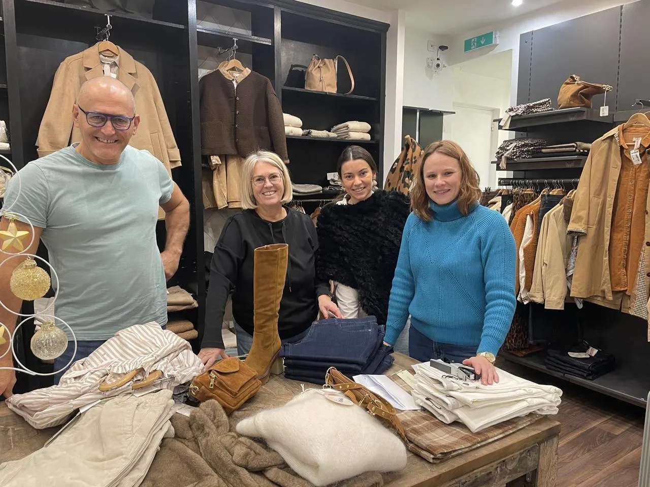 Carlos et Marie-Laure Ferreira en compagnie de leurs employées Tiffany et Caroline préparent la liquidation de Week-end pour elle et lui qui débute à partir du mercredi 10 décembre 2025. Ils vont se recentrer sur autre activité sur la côte vendéenne. © Ouest-France