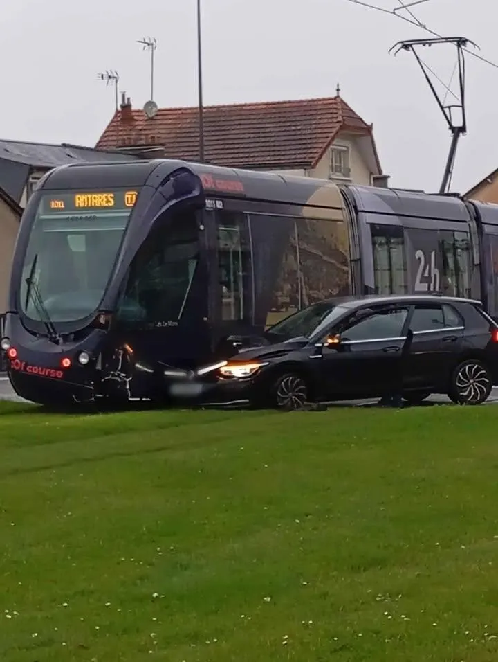 Une voiture percute le tramway au Mans, le service interrompu pendant environ une heure... |