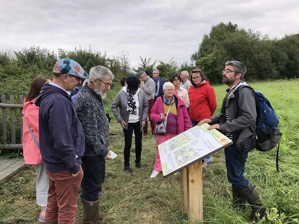 Les élus, dont le maire d’Arthezé (Sarthe), Sylvain Poirrier (avec une casquette), ont découvert le sentier d’interprétation de la zone humide. Ouest-France