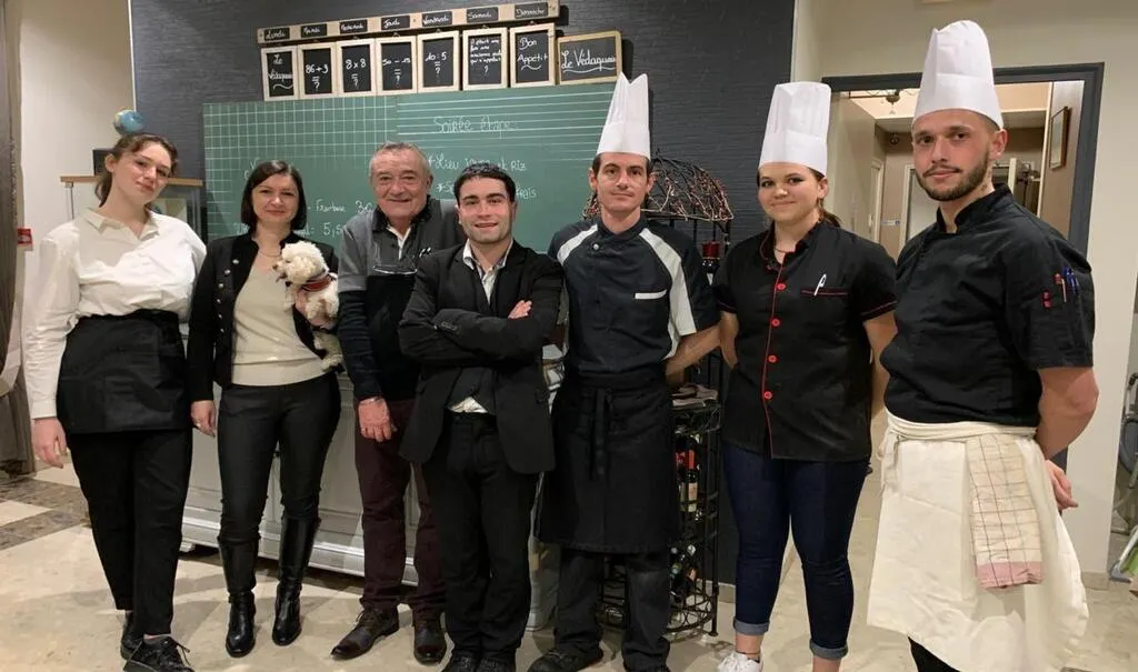 Alyssa, Sonia, Franck, Benjamin, Romain, Zoé et Gaylord constituent l’équipe actuelle de l’hôtel-restaurant Le Védaquais. © Ouest-France