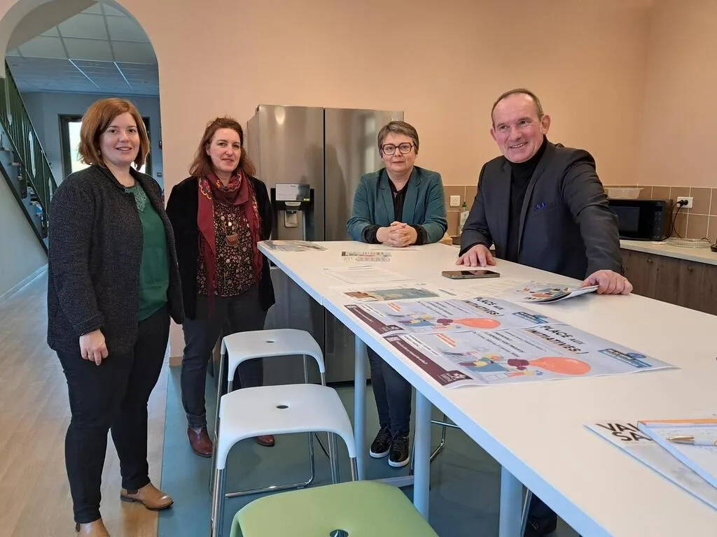 De gauche à droite : Aurélie Jouin, chargée de mission ; Sophie Lemaître, chargée de communication ; Élisabeth Moussay, vice-présidente, et Emmanuel Franco, président de la communauté de communes du Val de Sarthe. © Ouest-France