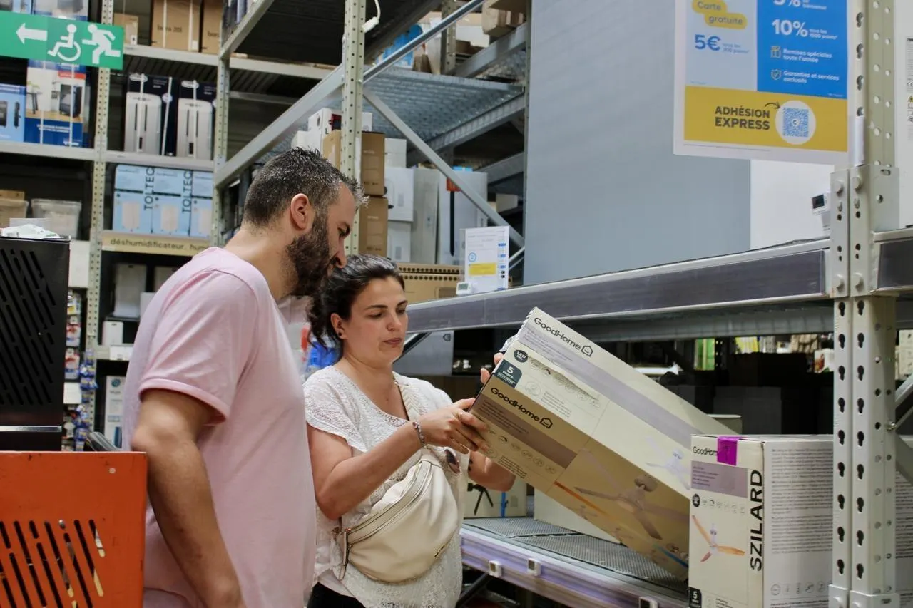 Un couple de jeunes parents investit dans un ventilateur de plafond pour rafraîchir leur pièce. © Le Maine Libre