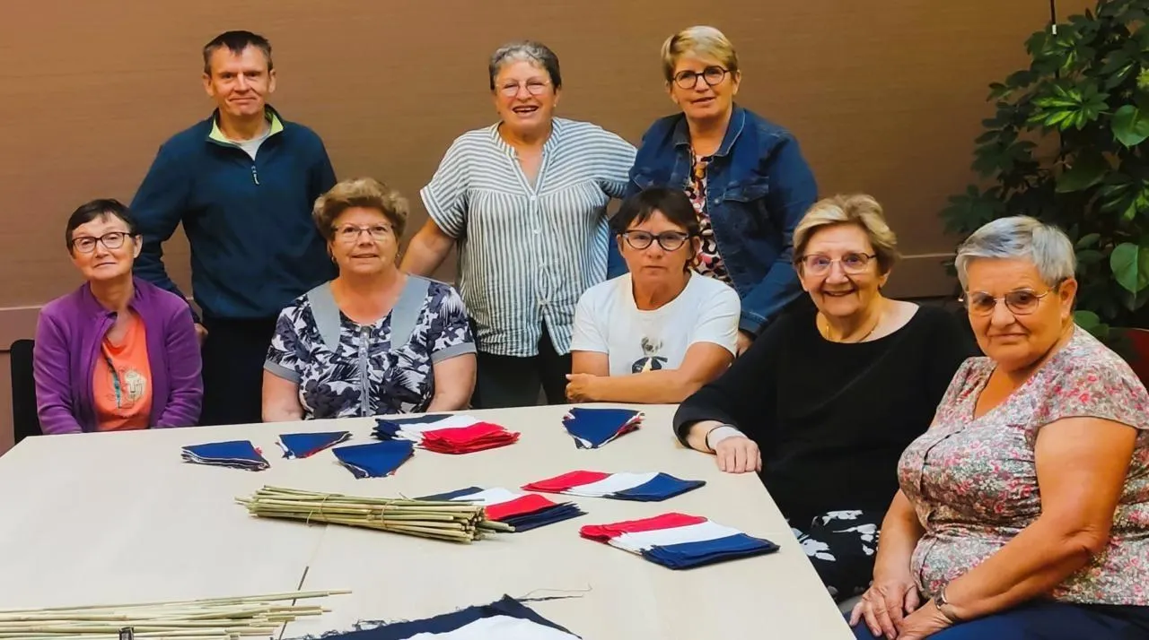 Des couturières bénévoles ont participé à l’élaboration de 138 drapeaux, une quarantaine de cocardes et 114 fanions, pas moins de 17 m de tissus cousus aux couleurs nationales, pour cette manifestation qui se déroulera du 26 septembre au 19 octobre.  Un grand merci pour ce travail qui s’est déroulé dans une belle ambianceÂ