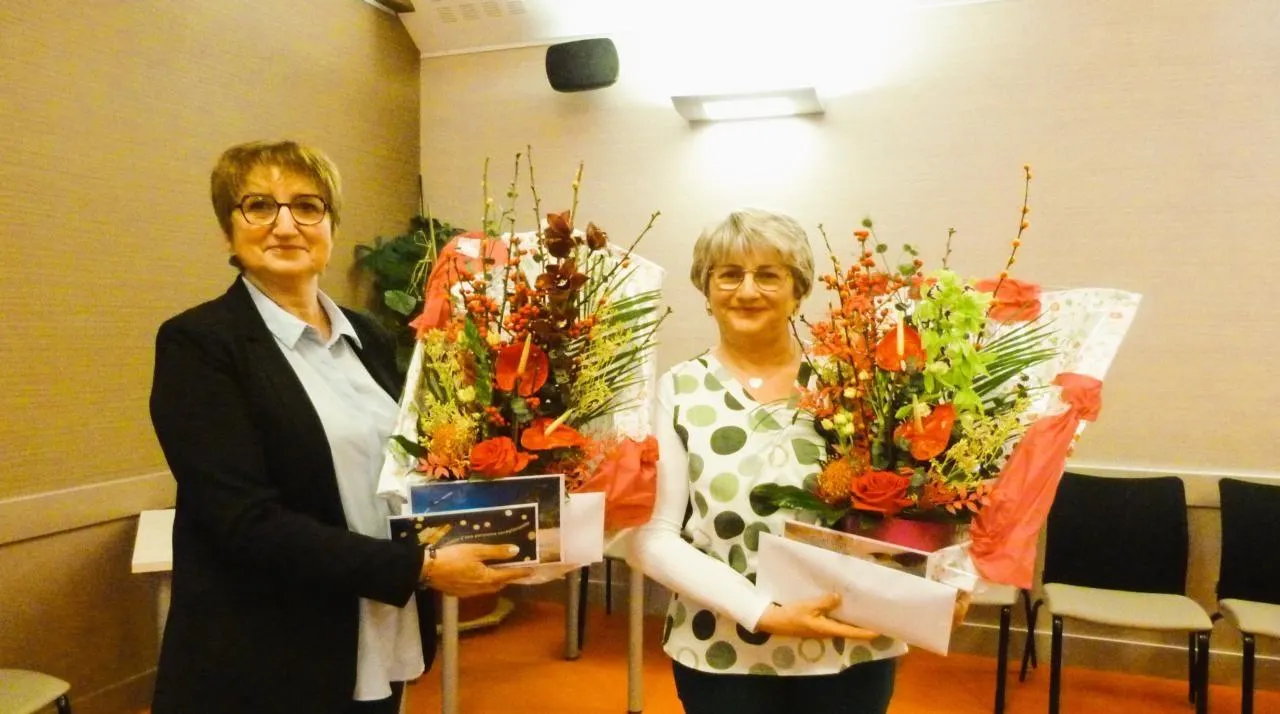 Marie-Christine Létang, à gauche, et Odile Paulin, à droite, ont été chaleureusement remerciées pour leur dévouement professionnel tout au long de leurs carrières. © Ouest-France