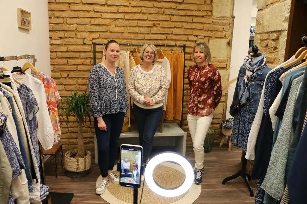 À Sablé-sur-Sarthe, Marie-Laure Ferreira et ses deux vendeuses s’improvisent mannequins et vidéastes pour faire face au troisième confinement. © Ouest-France