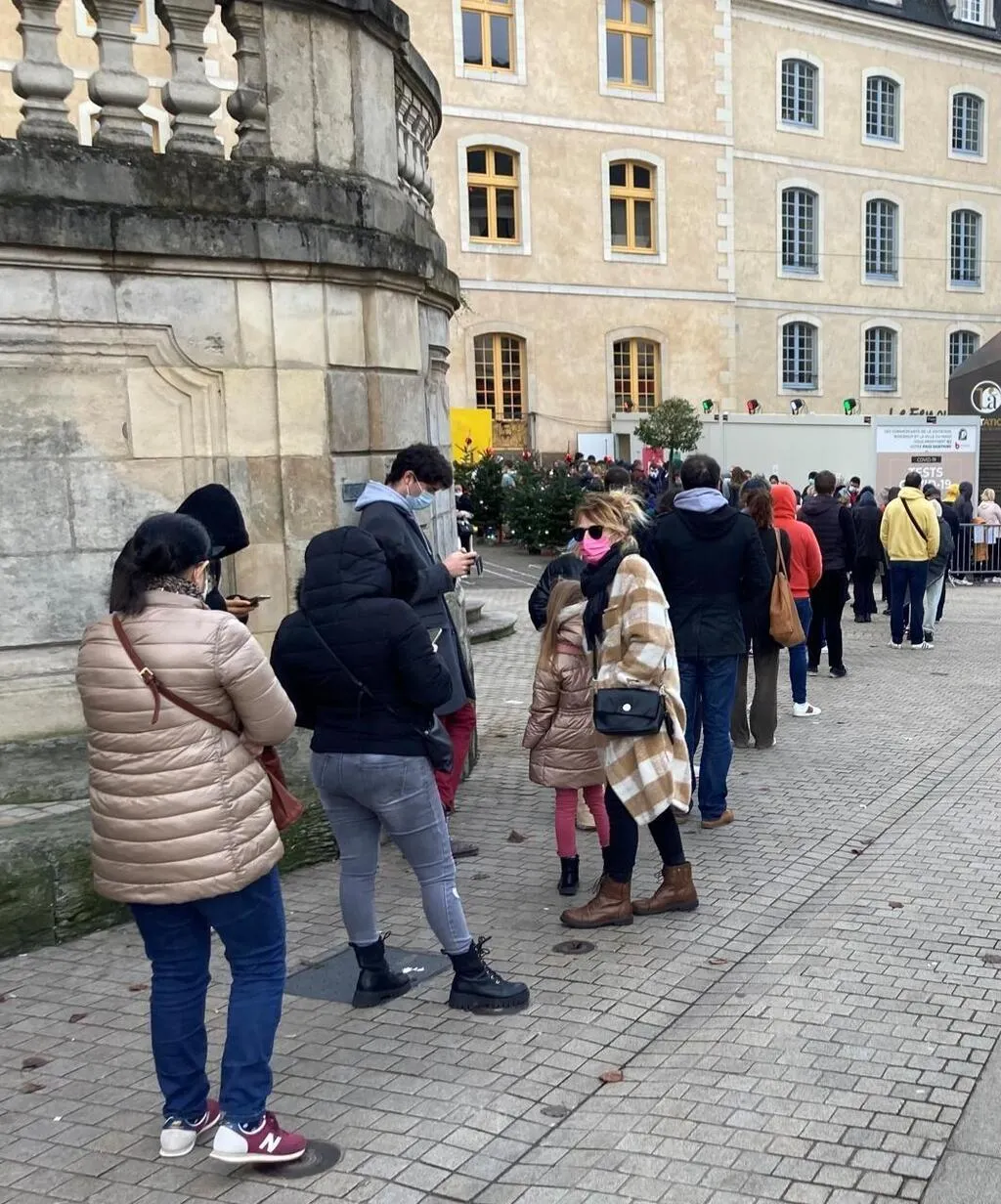 La longue file d’attente du centre de la Visitation du Mans, ce dimanche 2 janvier. © Le Maine Libre