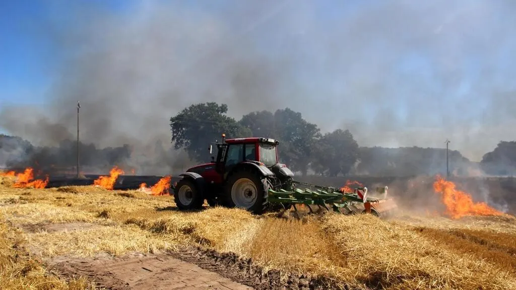Les agriculteurs tentent de créer un pare-feu avec une déchaumeuse © Le Maine Libre