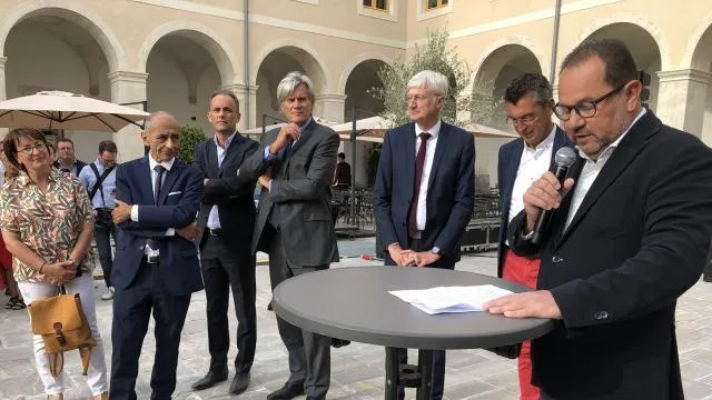 Promoteurs, maire, président du Département, préfet, députée, élus et commerçants… Beaucoup d’émotions, vendredi 6 septembre, sur l’esplanade intérieure du couvent du XVIIIe siècle reconverti en espace commercial.