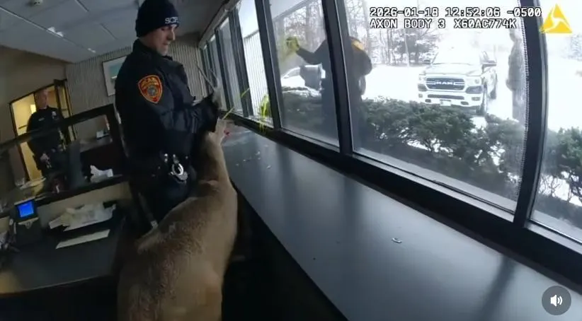 Un cerf a semé la pagaille dans une banque située à Ridge (États-Unis) le 18 janvier 2026, après s’être retrouvé piégé à l’intérieur. La police est intervenue pour sécuriser l’animal et le libérer. Une scène insolite filmée et partagée par les autorités.