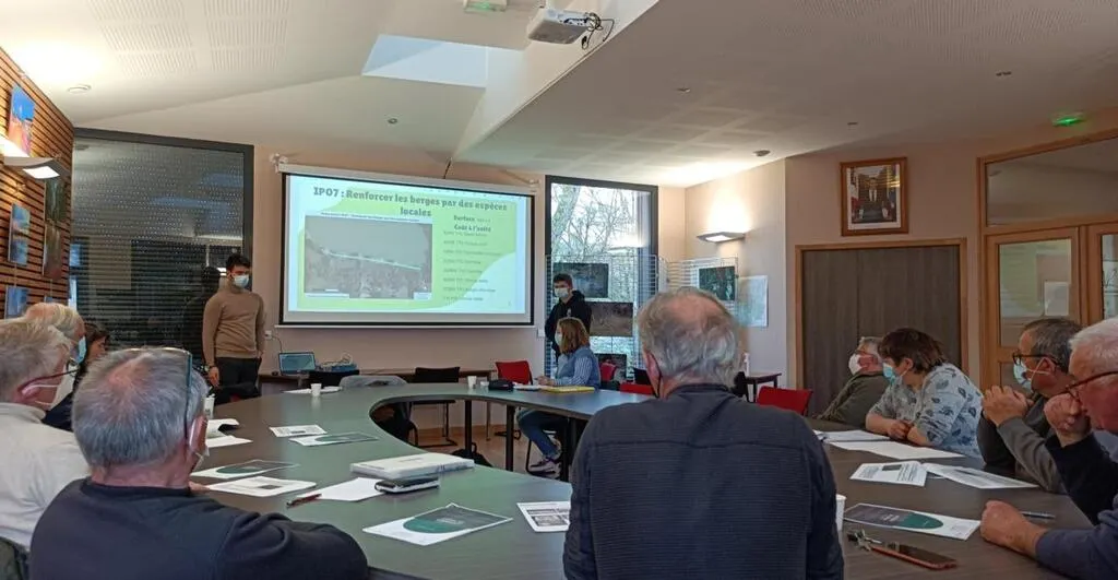 Clara, Jules et Clément, tous trois étudiants en BTS dans un lycée de l’Orne, ont restitué les résultats de leur travail sur l’étang de Chédouet face aux élus et membres d’associations concernées. Ce travail fera l’objet d’une épreuve orale. © Ouest-France