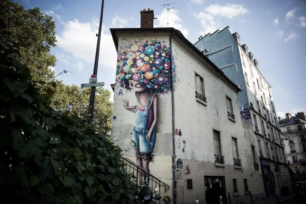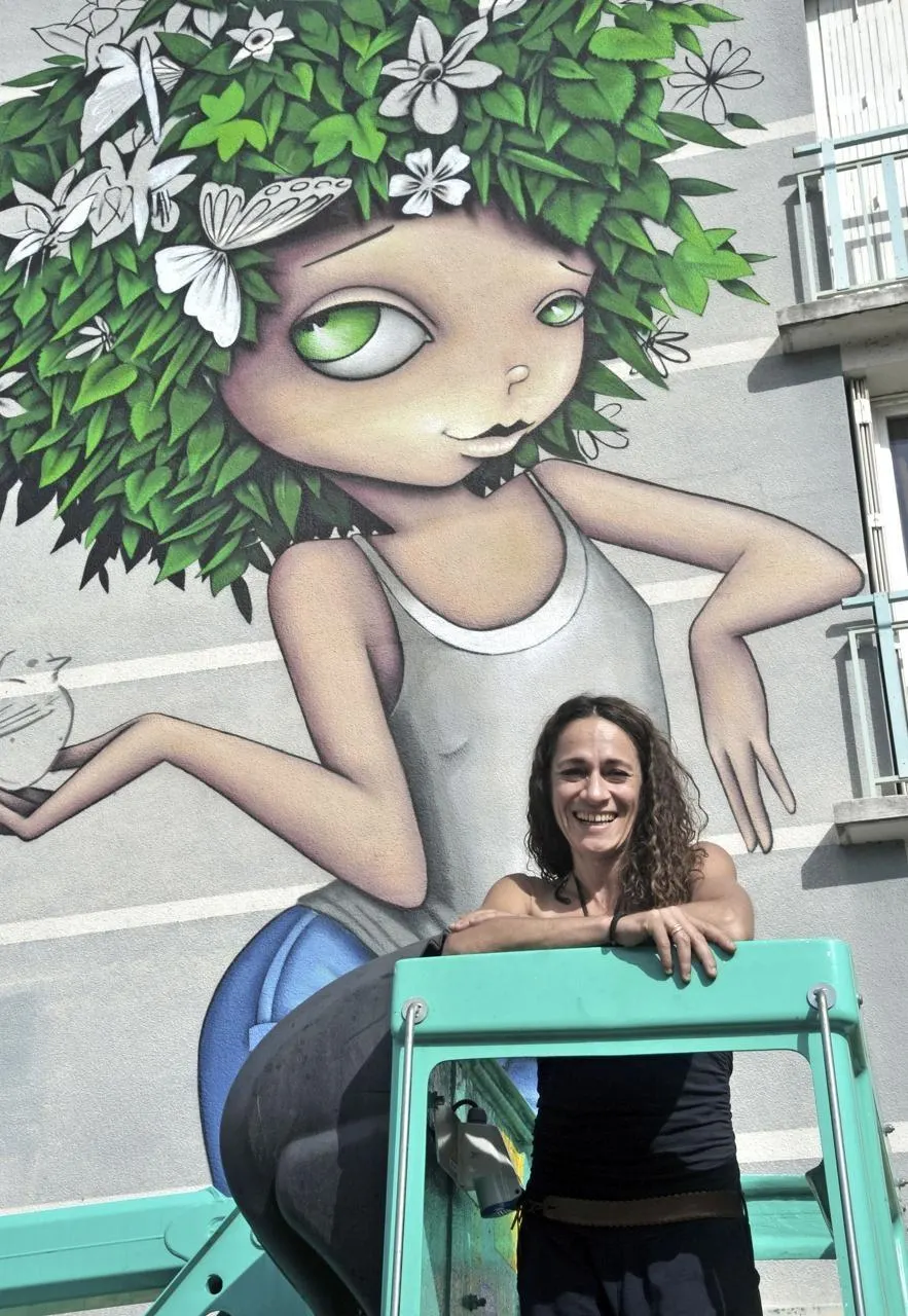 Réalisée en 2017 à Paris, la fresque « La Baguenaude de Valmy » est l’une des plus connues de Vinie Graffiti. © Hans Lucas via AFP