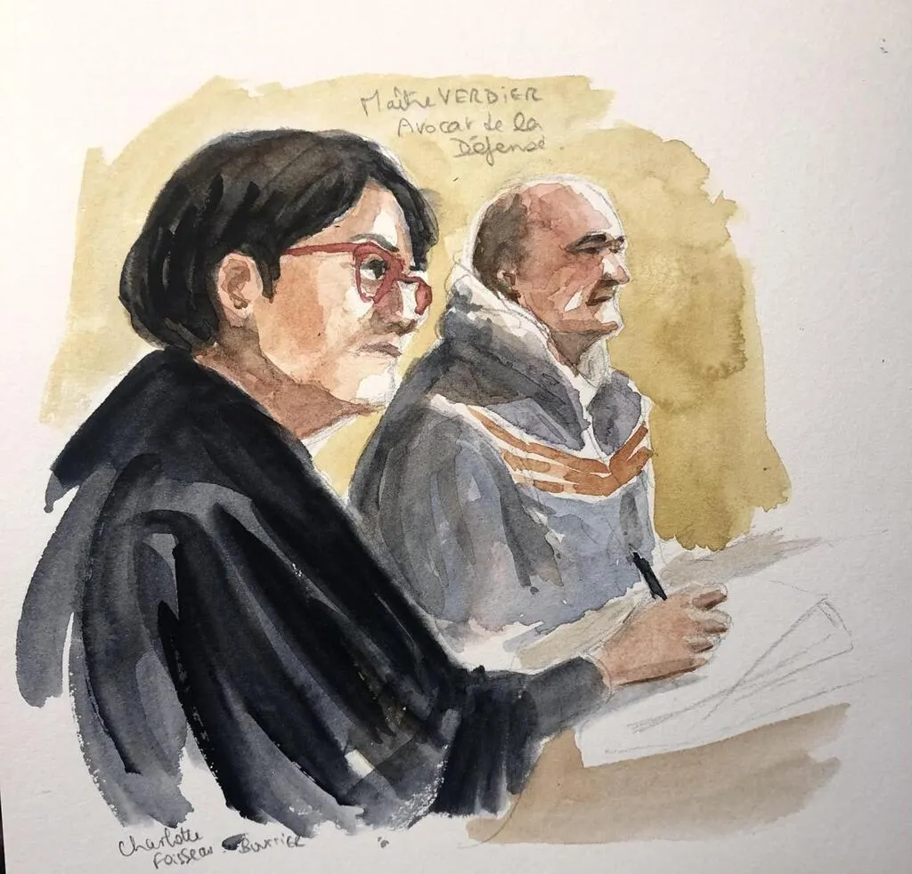 Les réponses laconiques de Joël B., défendu par Me Mickaëlle Verdier, ont quelque peu agacé l’avocat général. ©  Dessin Le Maine Libre - Charlotte FOISSEAU-BOUTTIER.