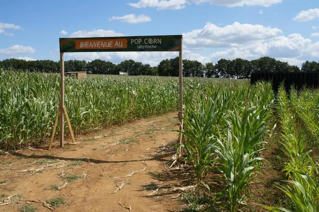 Le Pop Corn Labyrinthe de Trangé a accueilli ses premiers participants le 5 juillet 2025 sur les terres de la fromagerie de la famille Delaroue. Cette activité éphémère se terminera avec les moissons en septembre. © Ouest-France