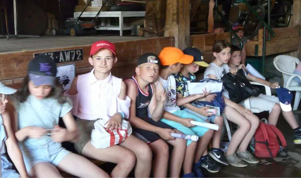 Les élèves ont pu se reposer dans le hangar avant la visite du moulin de la Lande © Le Maine Libre