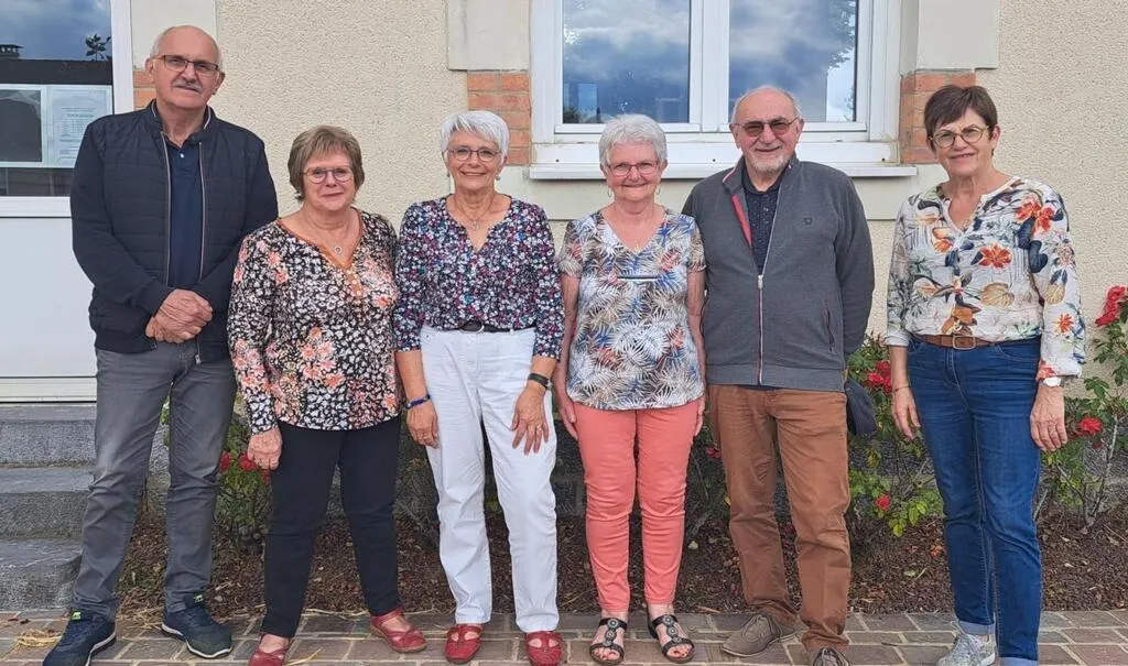 Bruno Quéru, Michèle Boivin, Thérèse Bigot, Guillemette Brault, Didier Pommier et Éliane Léveillé attendent leurs camarades d’école. © Ouest-France