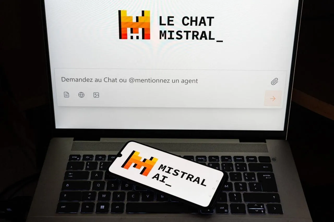 photo  le logo de mistral ai devant un écran affichant le chat, en janvier 2025.  ©  jean-marc barrere / hans lucas via afp 1