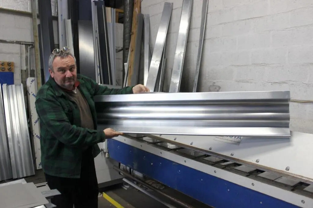 Christophe Chéneau montre une pièce réalisée avec une plieuse à commande numérique. © Le Maine libre