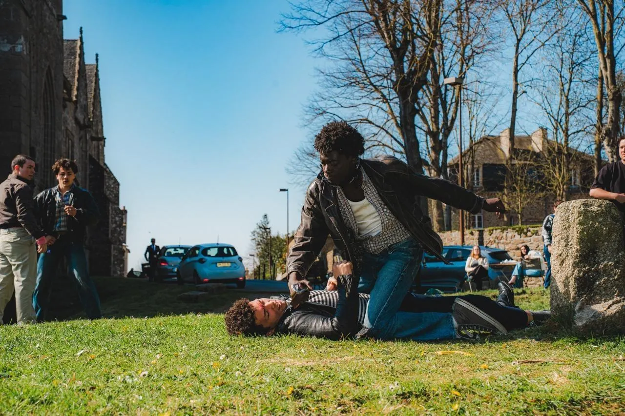 Jeudi 19 mars 2026, ils étaient une vingtaine devant la collégiale Notre-Dame-de-Grande-Puissance à Lamballe (Côtes-d’Armor) pour le tournage du court-métrage « Alassane 1979 ». Lequel nous plonge dans la Bretagne de la fin des années 1970, à travers le regard d’un jeune noir qui grandit au sein d’une bande et se retrouve face à un choix décisif : partir ou rester. Une histoire qui fait un peu écho à celle de son réalisateur Roméo des Cognets.
