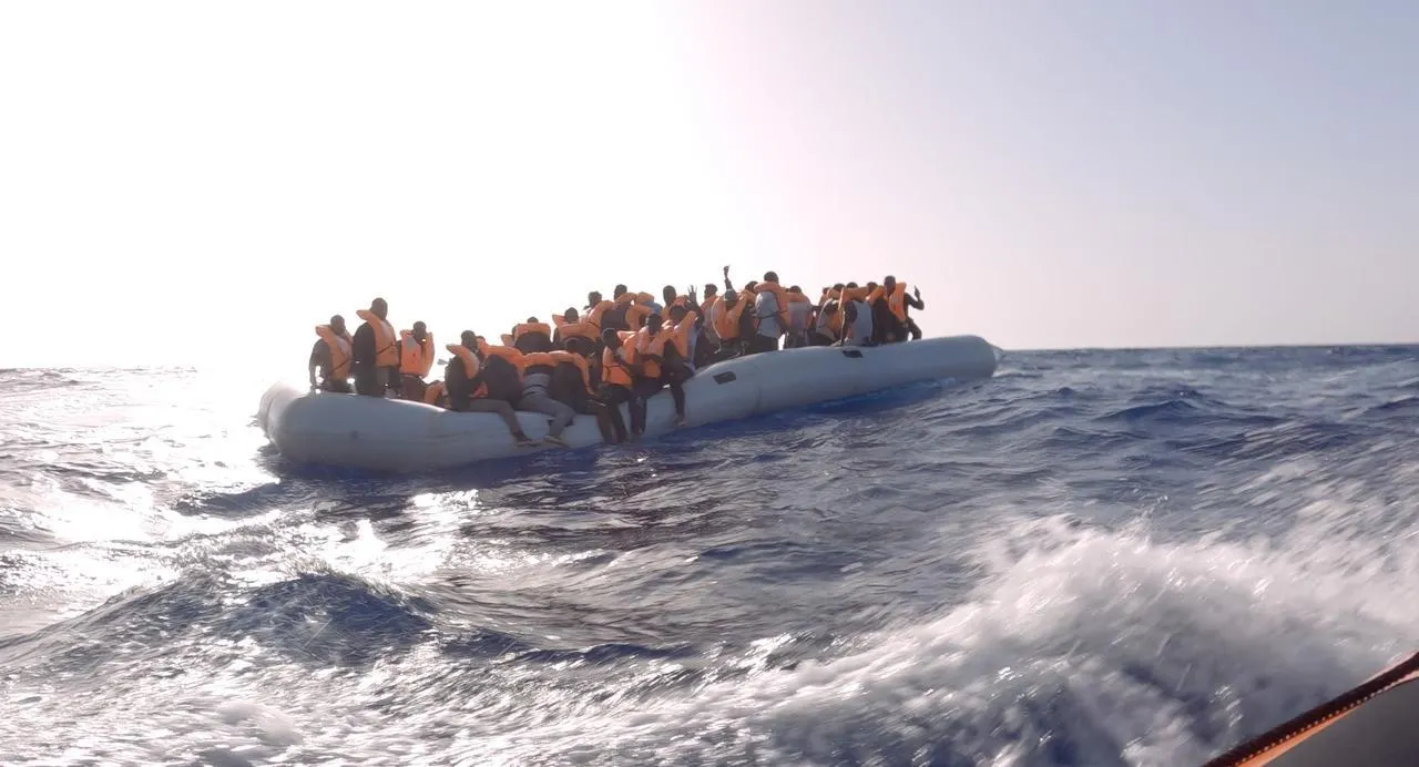 Un canot de migrants en Méditerranée avant un sauvetage. © Photo du documentaire Mothership de Muriel Cravatte