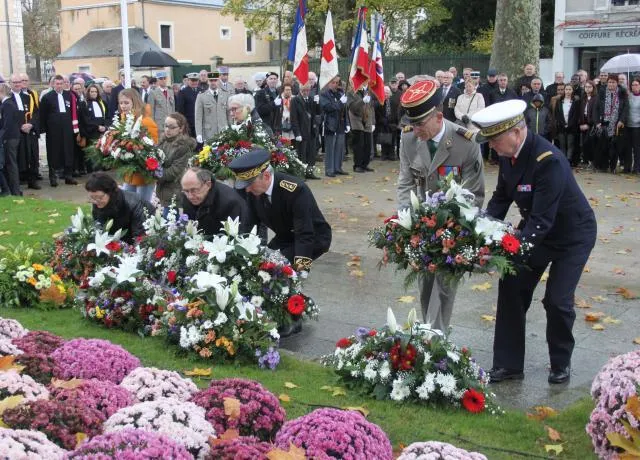 La matinée s’est achevée aux alentours de 12h30 par le dépôt de gerbes au pied du monument aux morts de la ville.